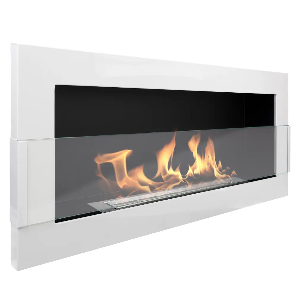 Type: hængende biopejs Dimensioner: 900 mm x 400 mm x 120 mm Overfladen er : pulverlakeret stål Farve: hvid glans Brænder indsats: rustfrit stål Fakkel: 0,75 l med kontinuerlig skudlinje Brændetid: 1-3 t/l Varmeeffekt: 2 kW Monteringsmetod
